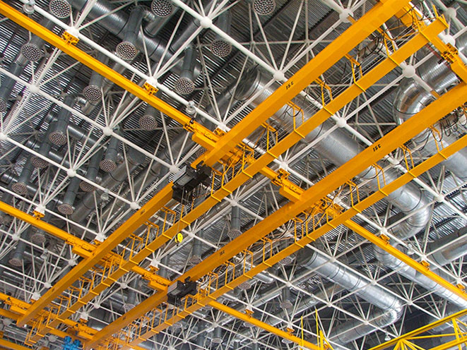 免維護設計,吊桿選用高強特制螺桿,連接強度高,便于軌道垂直方向調節;有效減小網架變形對起重機的影響。具有水平位移自動糾正功能;具有自適應性,